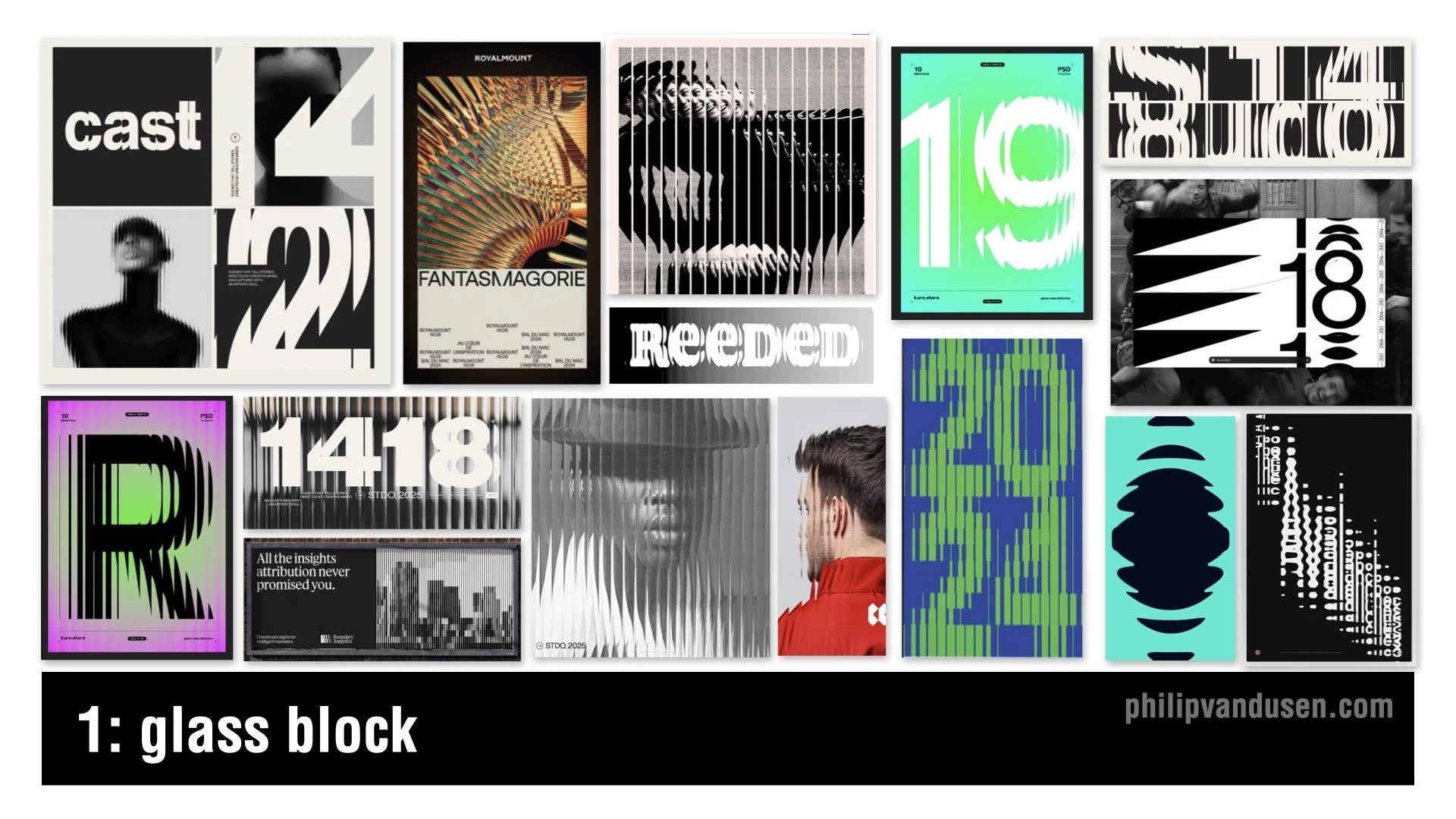 You will see this in posters, album covers, editorial work, and especially motion, where the distortion comes alive.