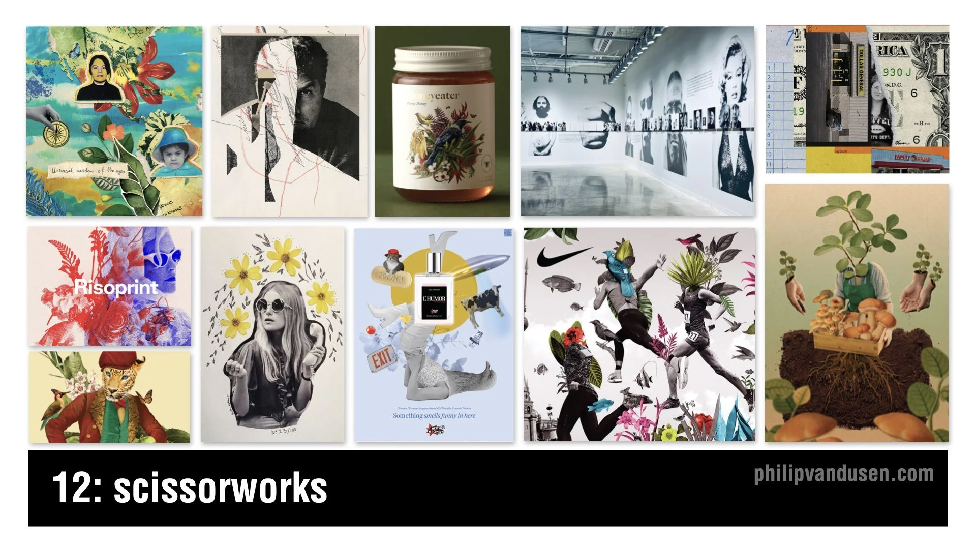 In direct response to AI’s polished imagery, Scissorworks brings hand-done collage back into the spotlight. It’s a renaissance of analog expression that leans into imperfection and narrative depth. This trend uses found artwork, imperfect cut edges, and archaic imagery to create juxtapositions that invite viewer interpretation.
