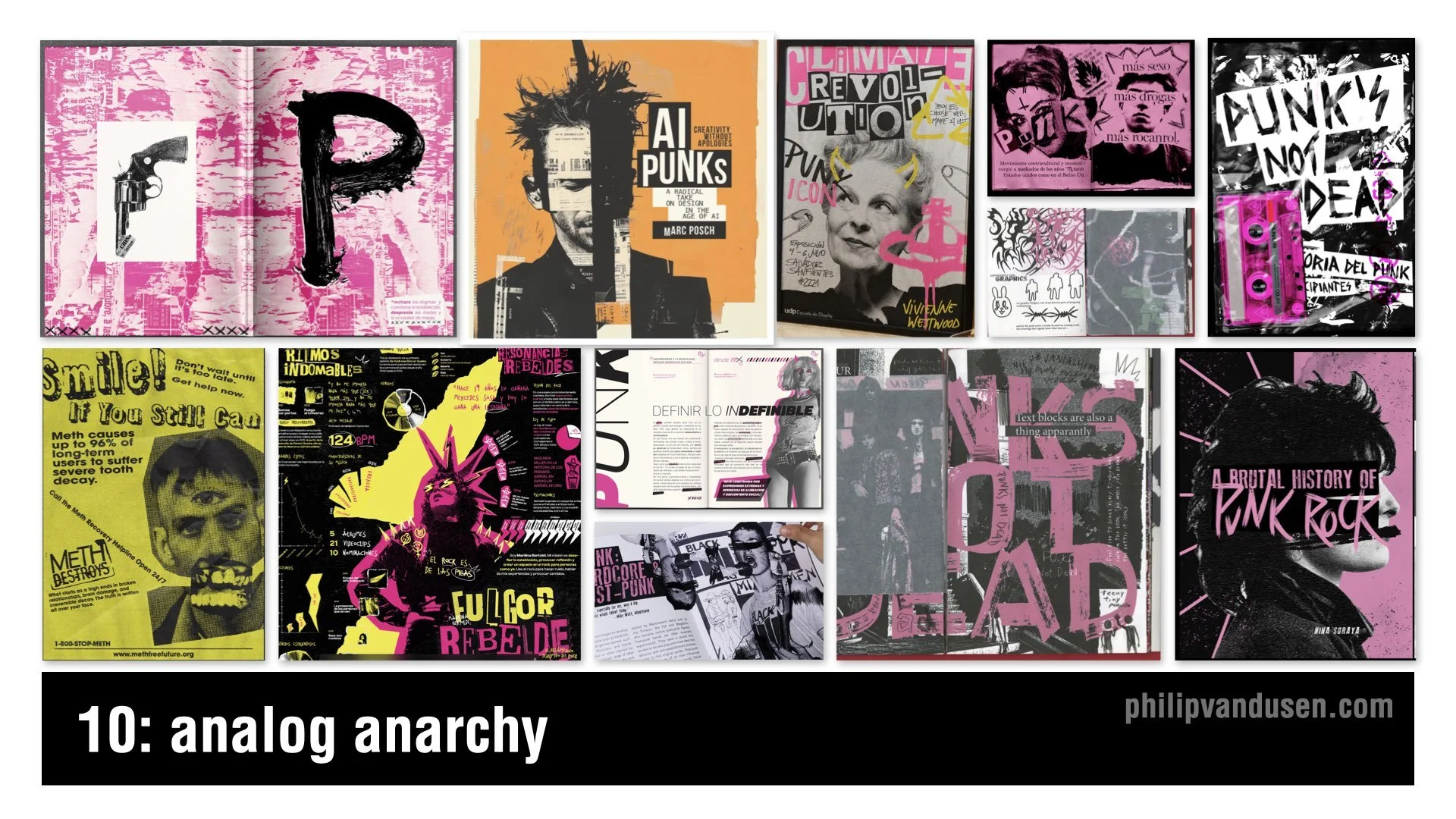 Analog Anarchy appears in music, fashion, and editorial design that taps into a rebellious zeitgeist.